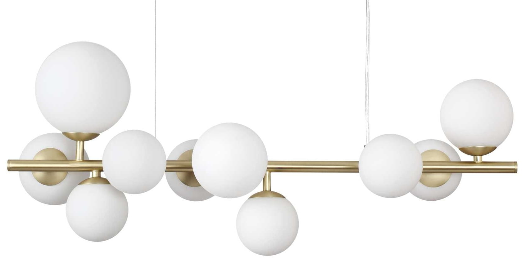 Żyrandol lampa wisząca drążek poziomy satynowy mosiądz szklane białe kule Ideal Lux 283791 Perlage sp10 10xG9