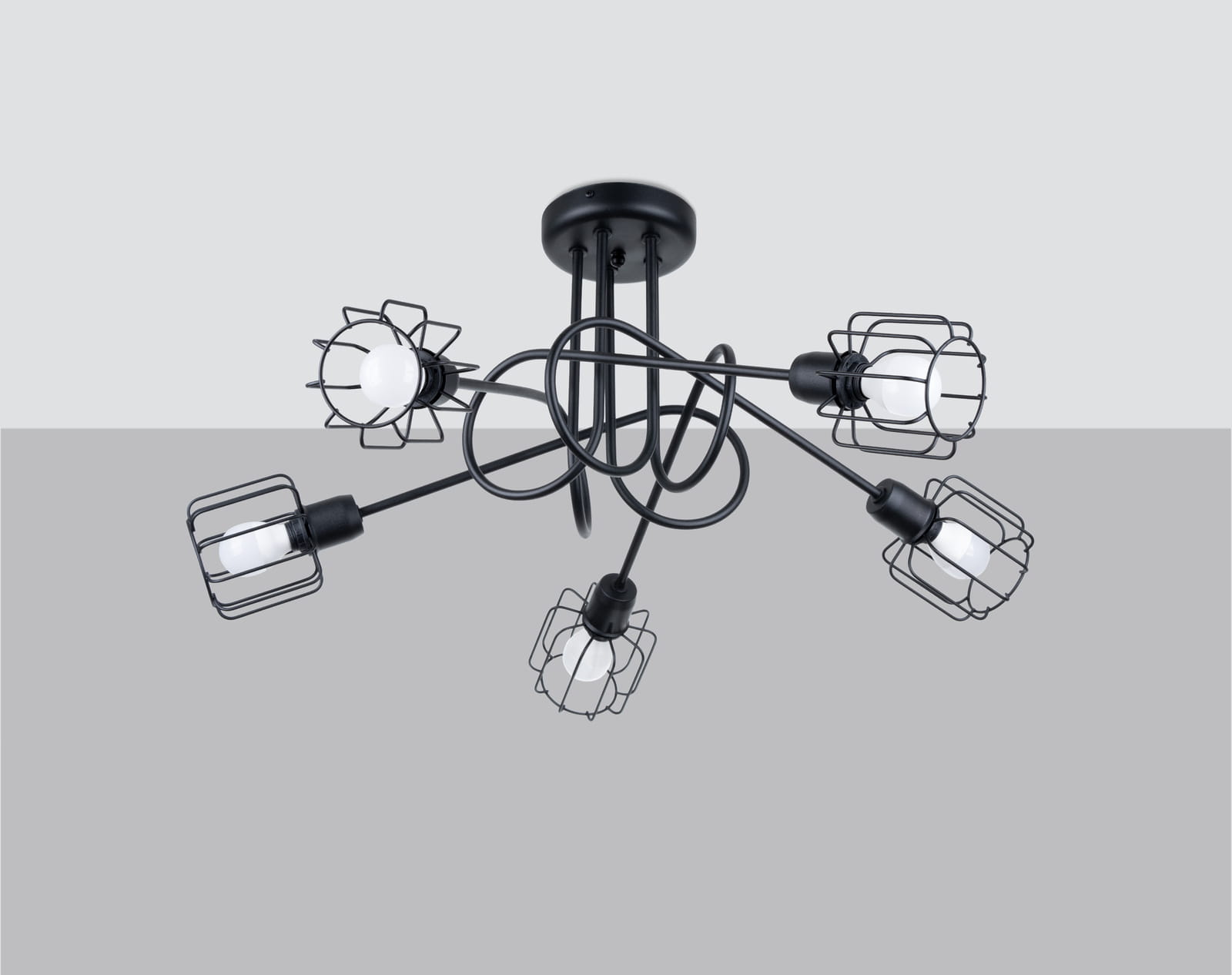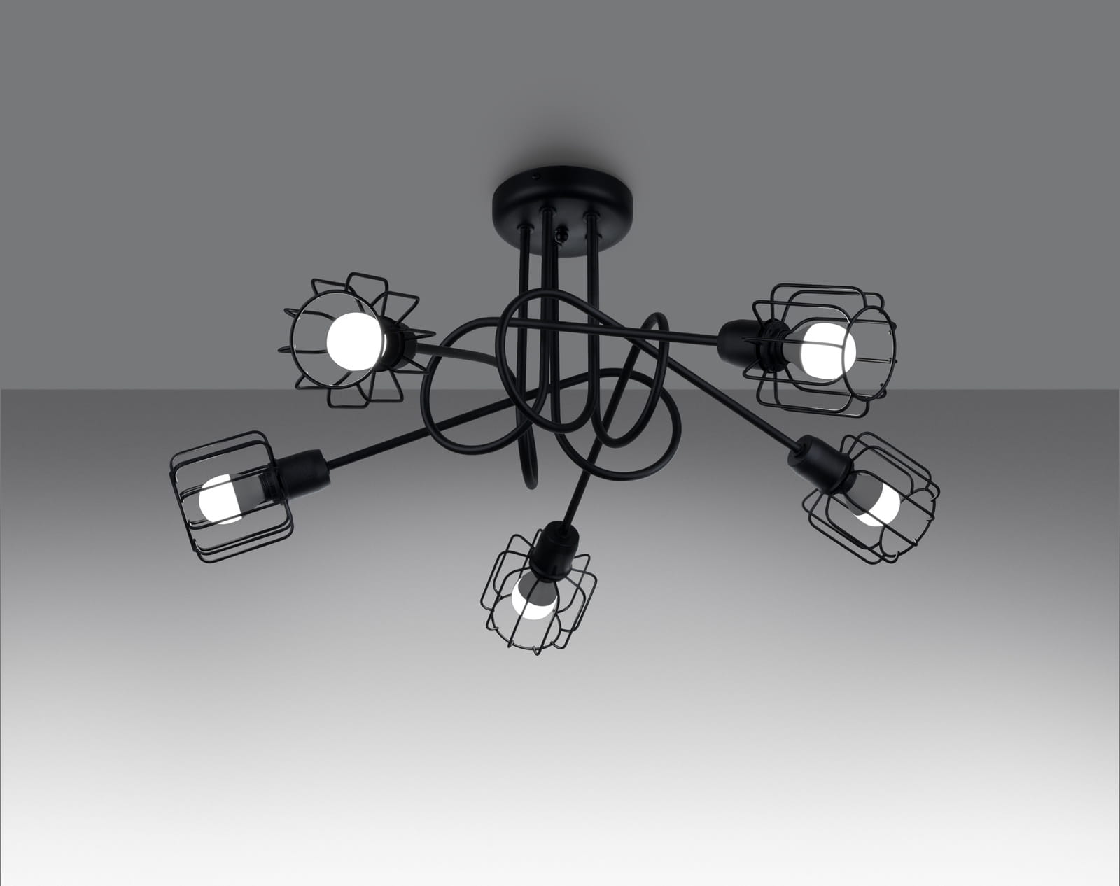 Żyrandol wiszący druciany stalowy z pięcioma ażurowymi kloszami Sollux Lighting SL.1119 BELUCI 5S czarny 5xE14