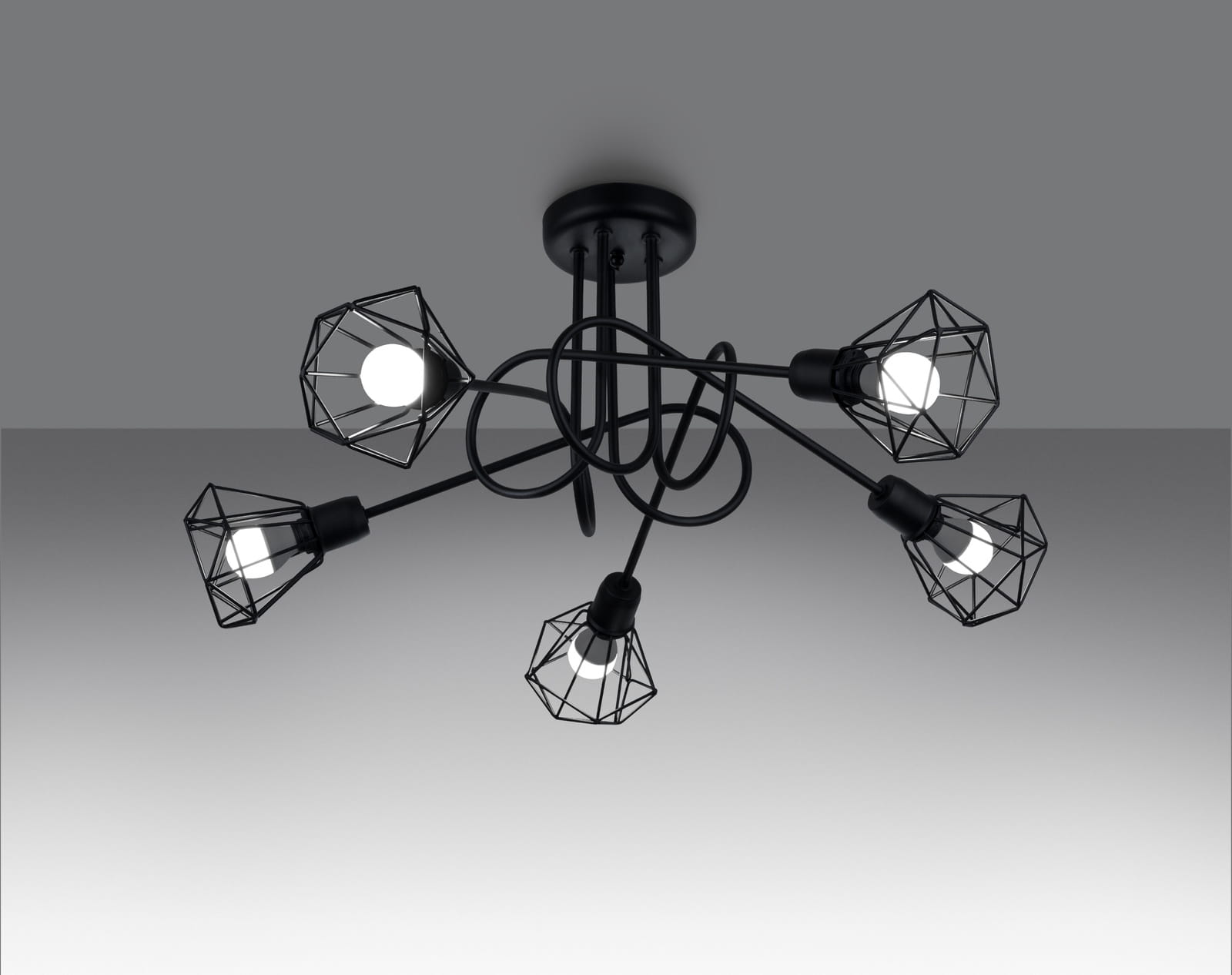 Żyrandol wiszący loftowy stalowy z pięcioma ażurowymi kloszami Sollux Lighting SL.1110 ARTEMIS 5S czarny 5xE14