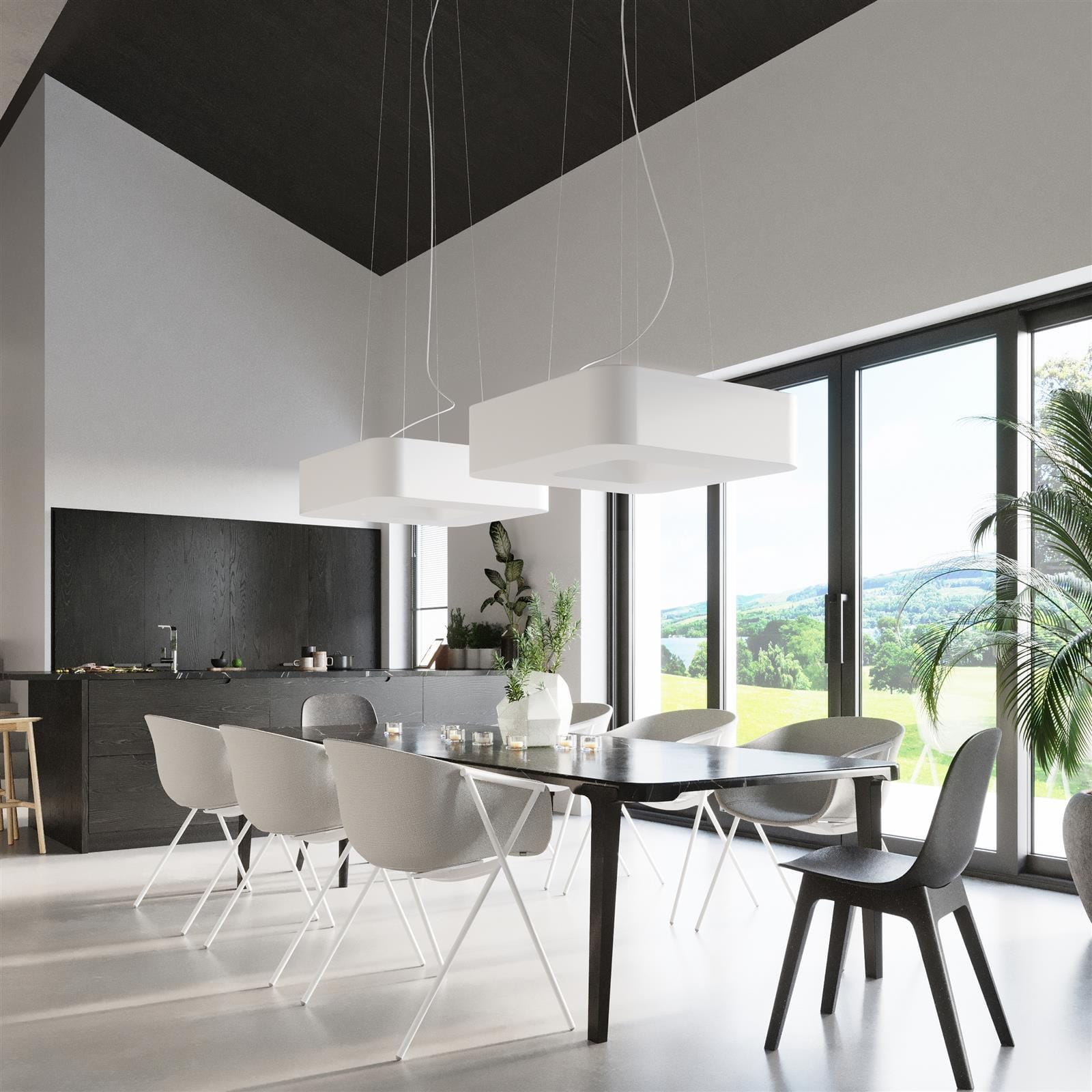 Żyrandol wiszący na linkach z kwadratowym kloszem Sollux Lighting SL.0783 2BM URANO 60 biały 8xE27 60cm