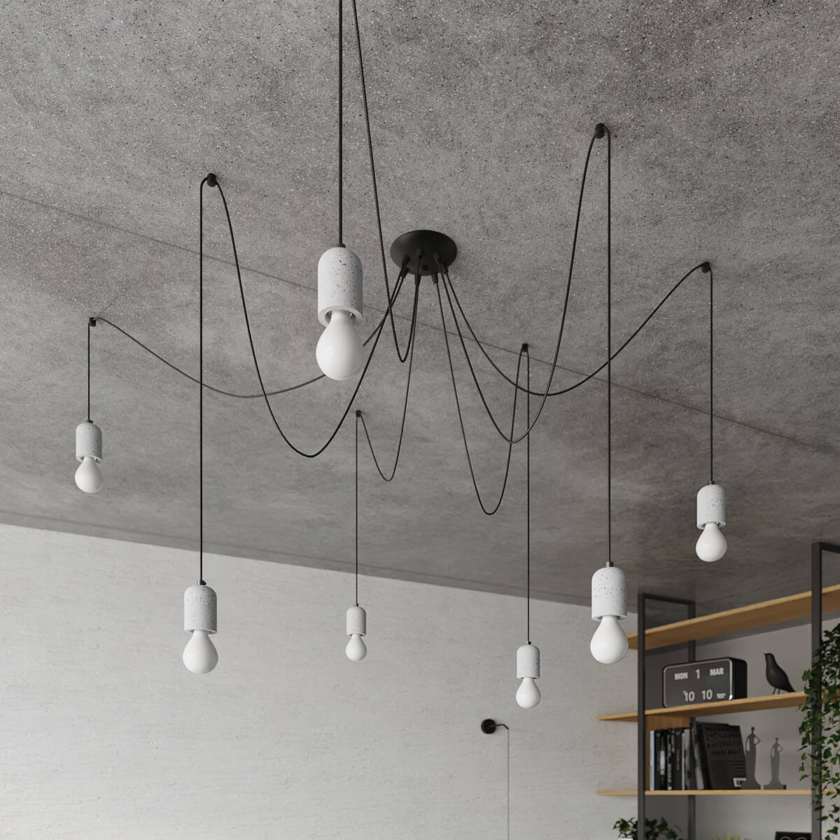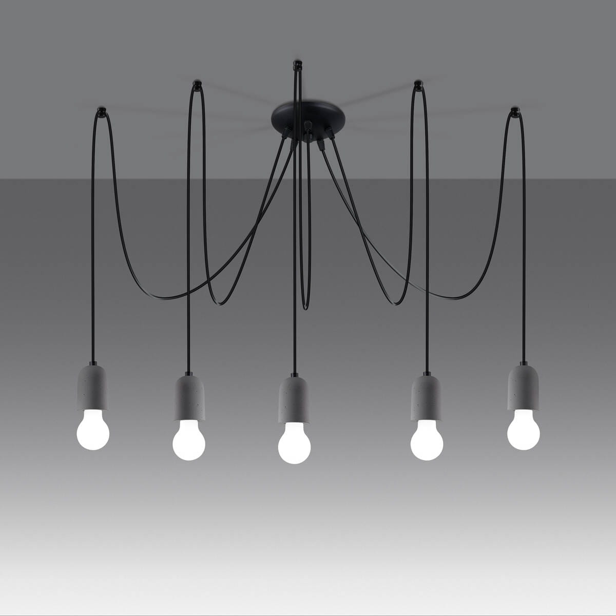 Żyrandol wiszący pająk w loftowym stylu z surowego betonu i PCV Sollux Lighting SL.1161 Persian Indigo NESO 5 5xE27